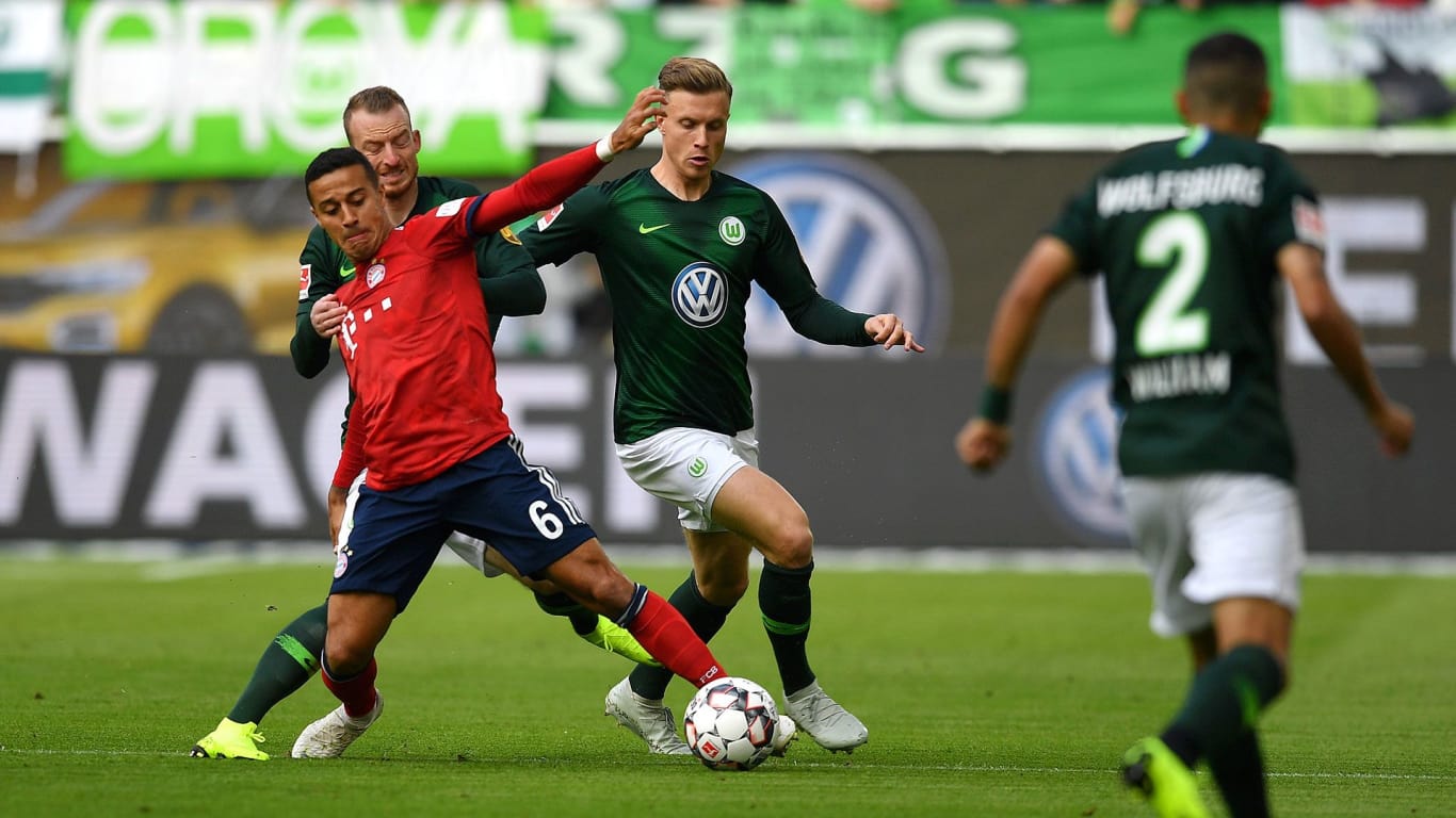 Die auf zwei Positionen im Vergleich zum letzten Spiel vor zwei Wochen veränderten Bayern – Javi Martínez und Serge Gnabry rückten für Thomas Müller und Leon Goretzka ins Team – begannen engagiert und schnürten die Wölfe direkt in deren Hälfte ein. Trotz guter Möglichkeiten war aber zunächst Wolfsburgs Schlussmann Koen Casteels Endstation für die Angriffe der Münchner: In der 12. Minute parierte der Keeper einen Freistoß von James und war auch in der Folge gegen Joshua Kimmich (22.), Robben und Lewandowski (beide 25.) zur Stelle.