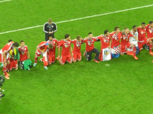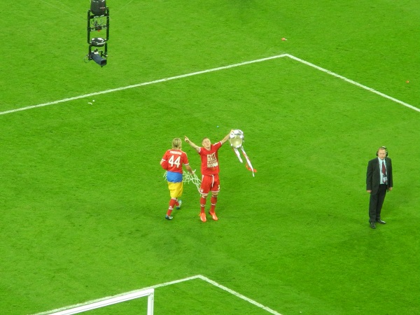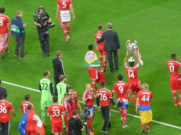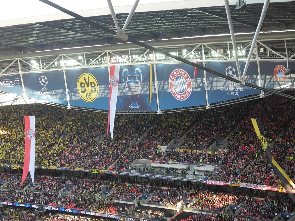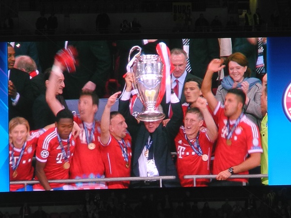 Erstes deutsches Finale in der UEFA Champions Leaugue - FC Bayern München vs. Borussia Dortmung. Für zwölf Mitglieder unseres Fanclubs wurde dieser Traum am 25. Mai 2013 war. Zusammen mit dem Fanclub aus Neuendorf starteten die Glücklichen am 24. Mai mit dem Bus in Richtung London. Schon auf der Hinfahrt wurde bis in die Morgenstunden ordentlich gefeiert und sich sich so auf das Traumfinale eingestimmt. Mit super Plätzen in der Bayernkurve wurde das über 90 Minuten spannende Spiel verfolgt und die Bayern-Mannschaft natürlich noch vorne gepeitscht. Als Arjen Robben in der 90. Minute das erlösende 2:1 für den erzielte und der FCB dadurch zum 5. Mal die Königsklasse des europäiscgen Fußballs gewann, gab es auf den Rängen kein Halten mehr. Bis in die Nacht wurde dieser Sieg gebührend gefeiert, bevor am Sonntagmorgen die Heimreise mit dem Bus angetreten wurde. Nach fast 15-stündiger Fahrt und völlig übermüdet landeten unsere "12" wieder in Gemünden. Für alle Beteiligten war nicht nur das Spiel, sondern der gesamte Ausflug und das Drumherum ein unvergessliches Erlebnis.