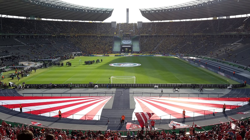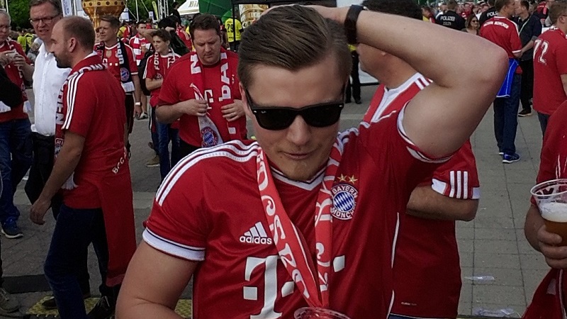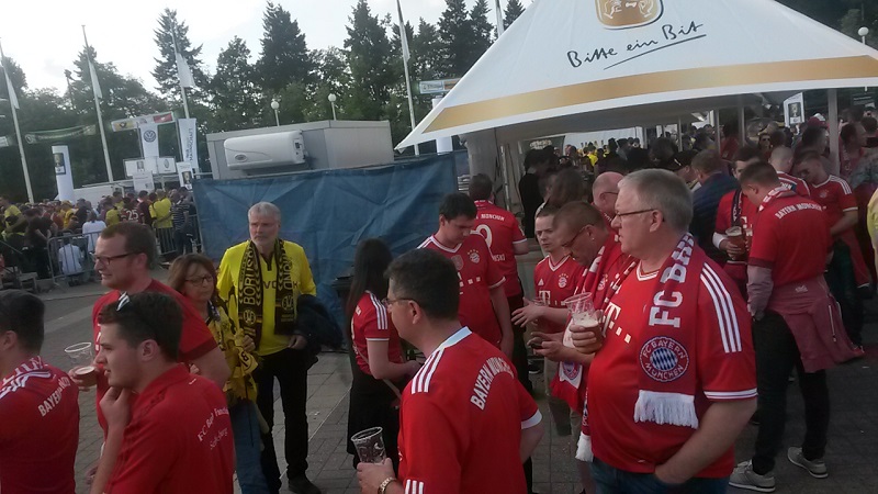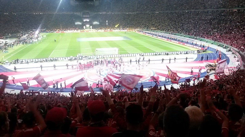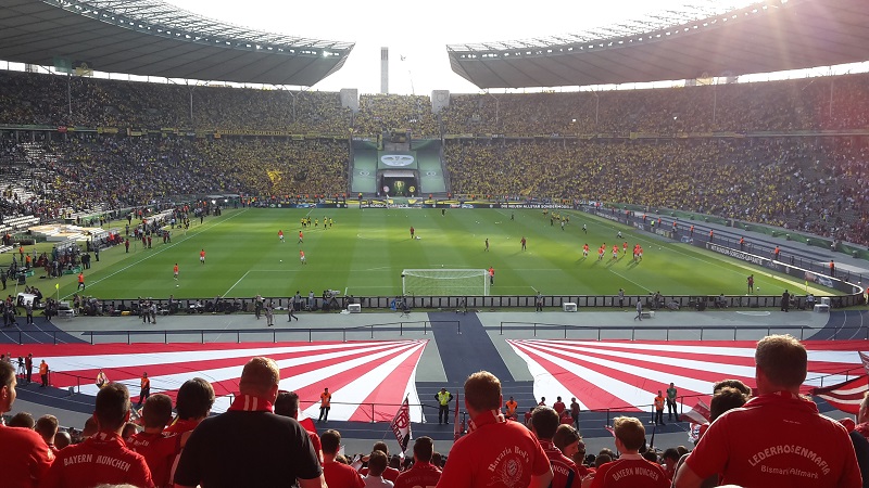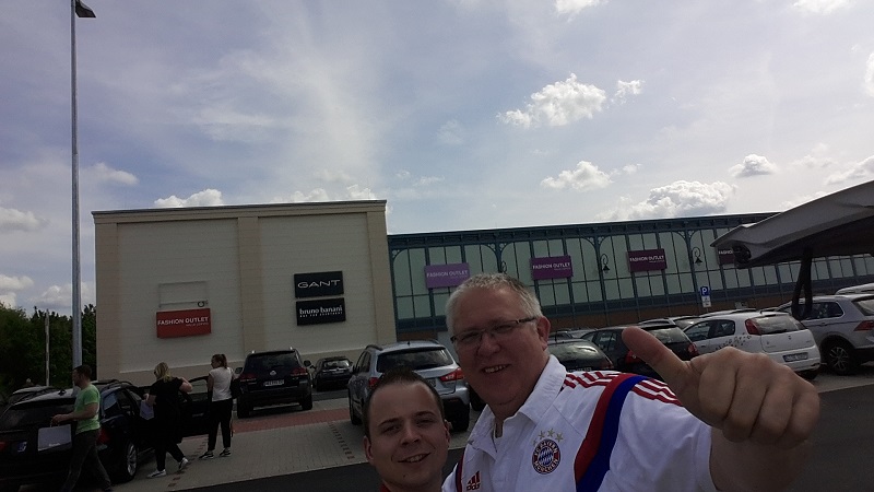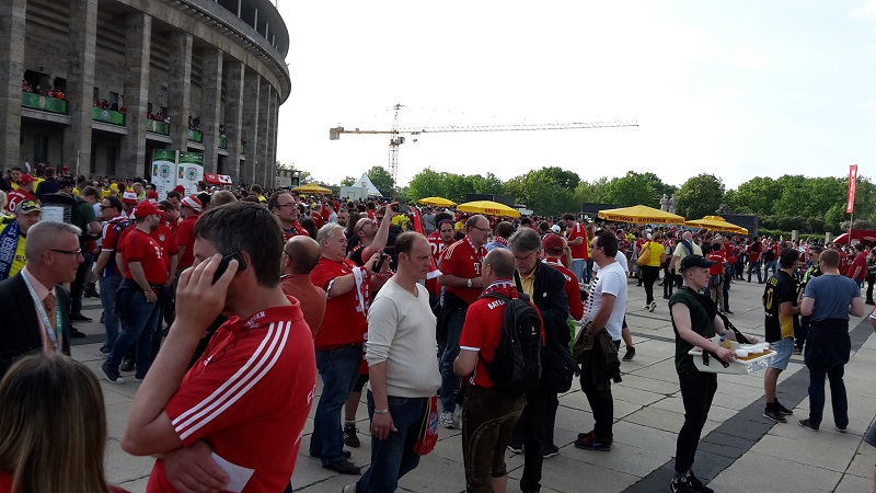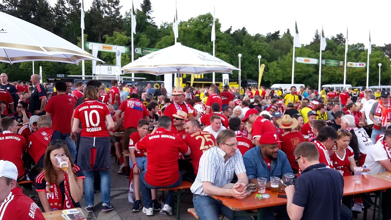 Zum 18. Mal sicherte sich der FC Bayern München am 21. Mai 2016 den DFB-Pokal. Acht Mitglieder unseres Fanclub waren beim zugleich letzten Spiel von Startrainer Pep Guardiola im Berliner Olympiastadion live dabei. Schon auf der Hinreise gab es das ein oder andere Highlight zu bestaunen. Beim Stopp am Imbiss Haase in Magdala verzehrten die Beteiligten genüsslich die originalen Thüringer Bratwürste. Einem Mitglied schmeckten die Thüringer Spezialitäten so gut, dass kurze Zeit später die Hose nicht mehr passte und Schaden davon trug. Deshalb wurde das nächste Outlet nahe Leipzig aufgesucht und die "Männerrunde" konnte erstmal ordentlich shoppen. Neu angekleidet kam die Reisetruppe am Nachmittag im wolkenlosen Berlin an und bereitete sich auf dem Fanfest vor dem altehrwürdigen Olympiastadion auf das Finale gegen den Erzrivalen aus Dortmund vor. Von besten Plätzen aus verfolgten unsere Mitglieder das zwar torlose, aber spannende Spiel zweier an diesem Abend gleichwertigen Mannschaften. Im Elfmeterschießen bewies die Mannschaft des FCB einmal mehr mentale Stärke. Douglas Costa war es, der den entscheidenden Elfmeter im Tor der Dortmunder versenkte und das ganze Stadion zum beben brachte. Glücklich und in Feierlaune wurde auf dem Heimweg noch schnell ein Getränkewagen legal geplündert, bevor dieser ereignisreiche Tag mit der fast fünfstündigen Heimfahrt endete.